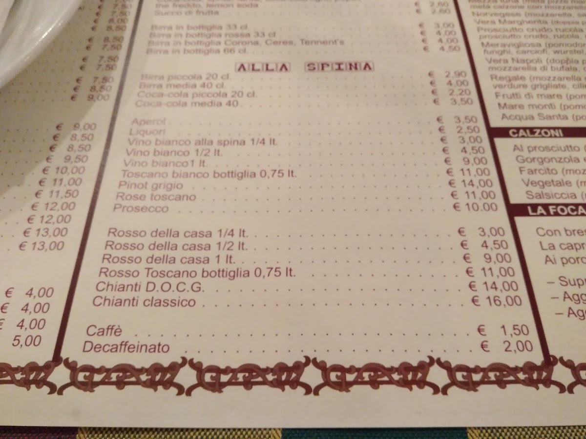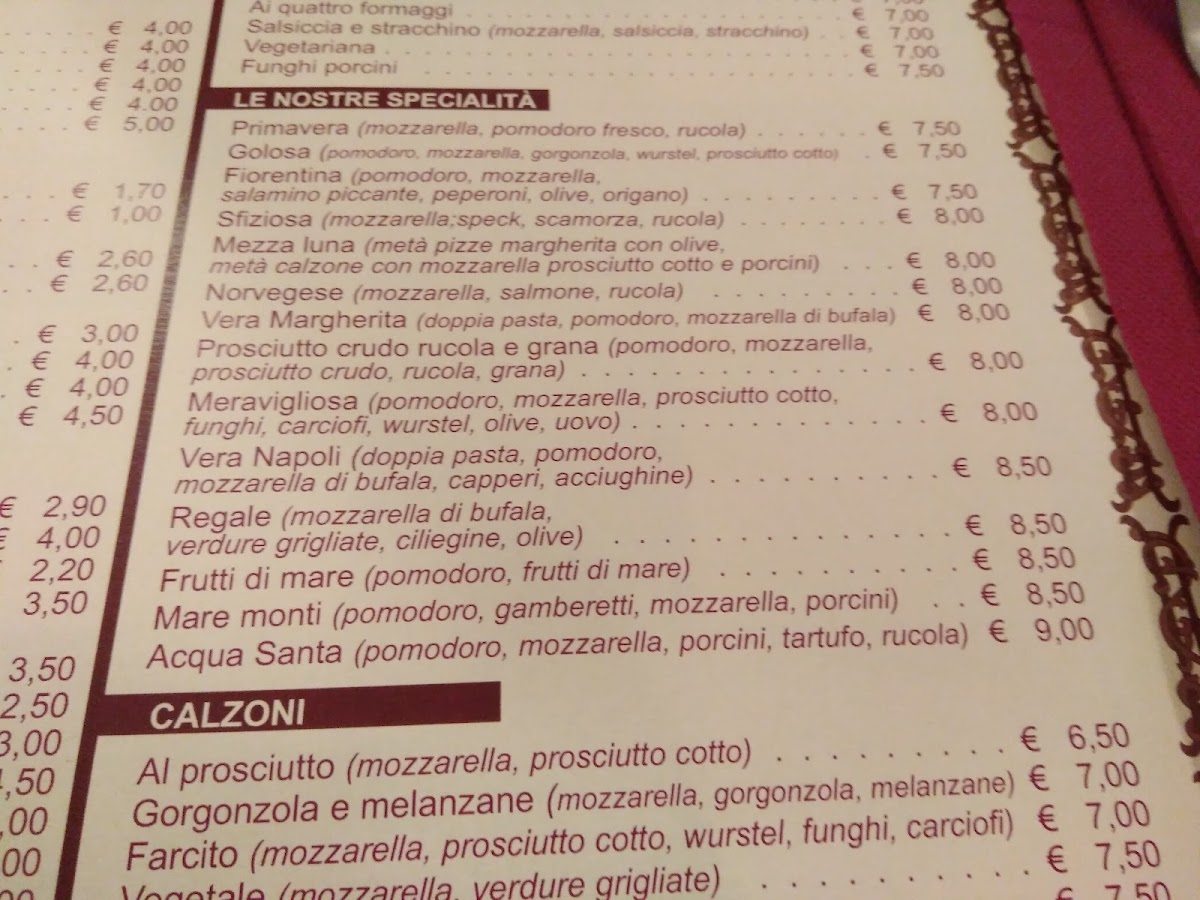 Pizza: A local favorite, boasting a variety of toppings at an affordable price, ranging from €7 to €14.